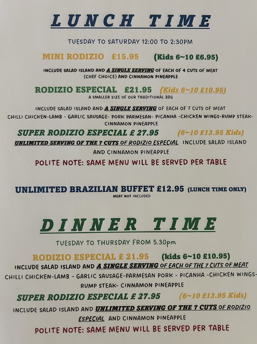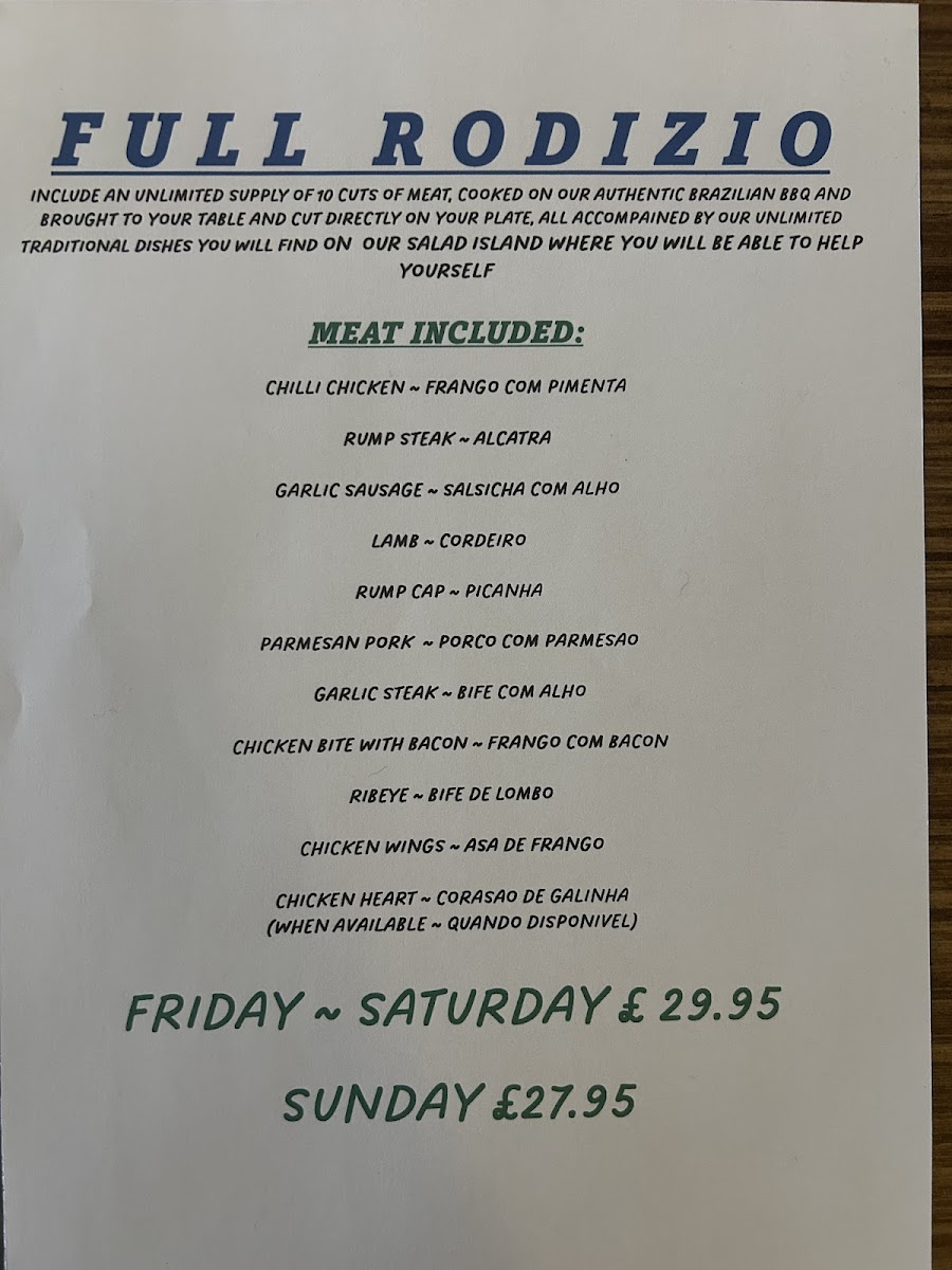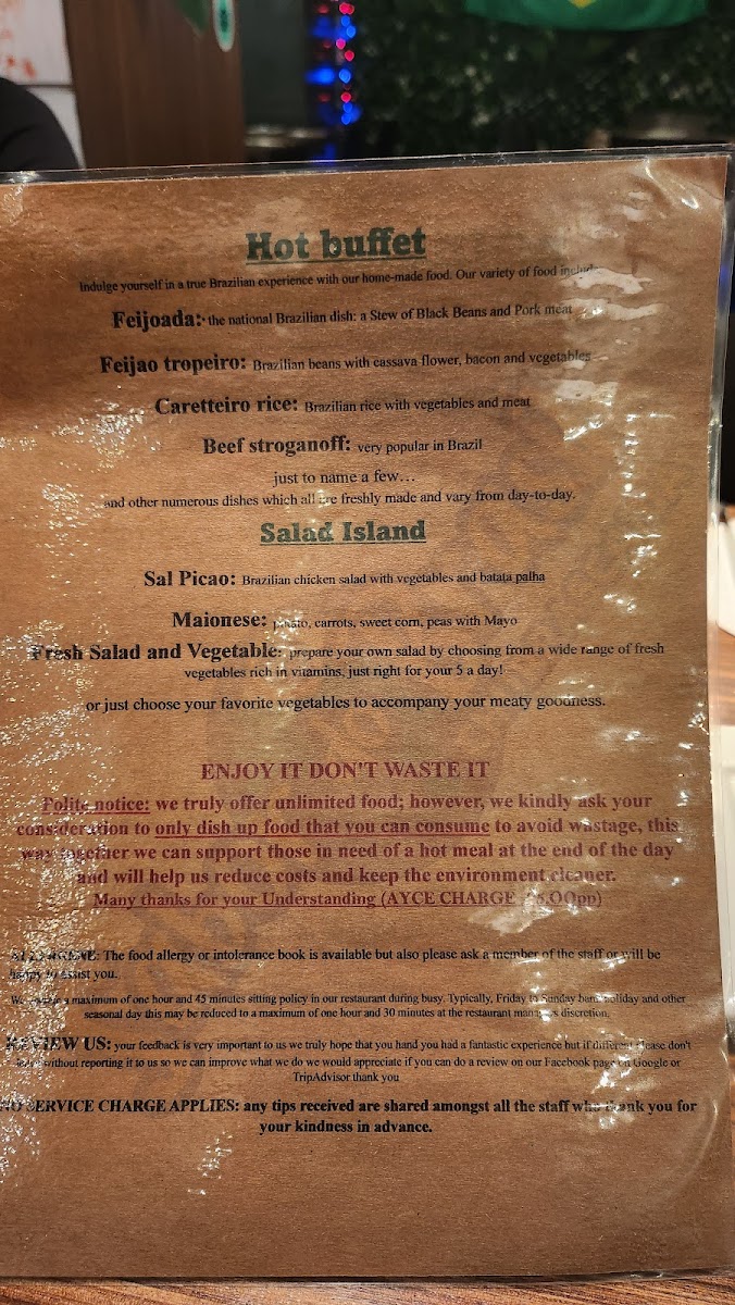The atmosphere is warm and welcoming, with colorful decorations that transport you straight to Brazil. The friendly staff adds to the experience, providing excellent service and offering recommendations from the menu. Whether you're a first-time visitor or a regular, they make sure you're treated like family.